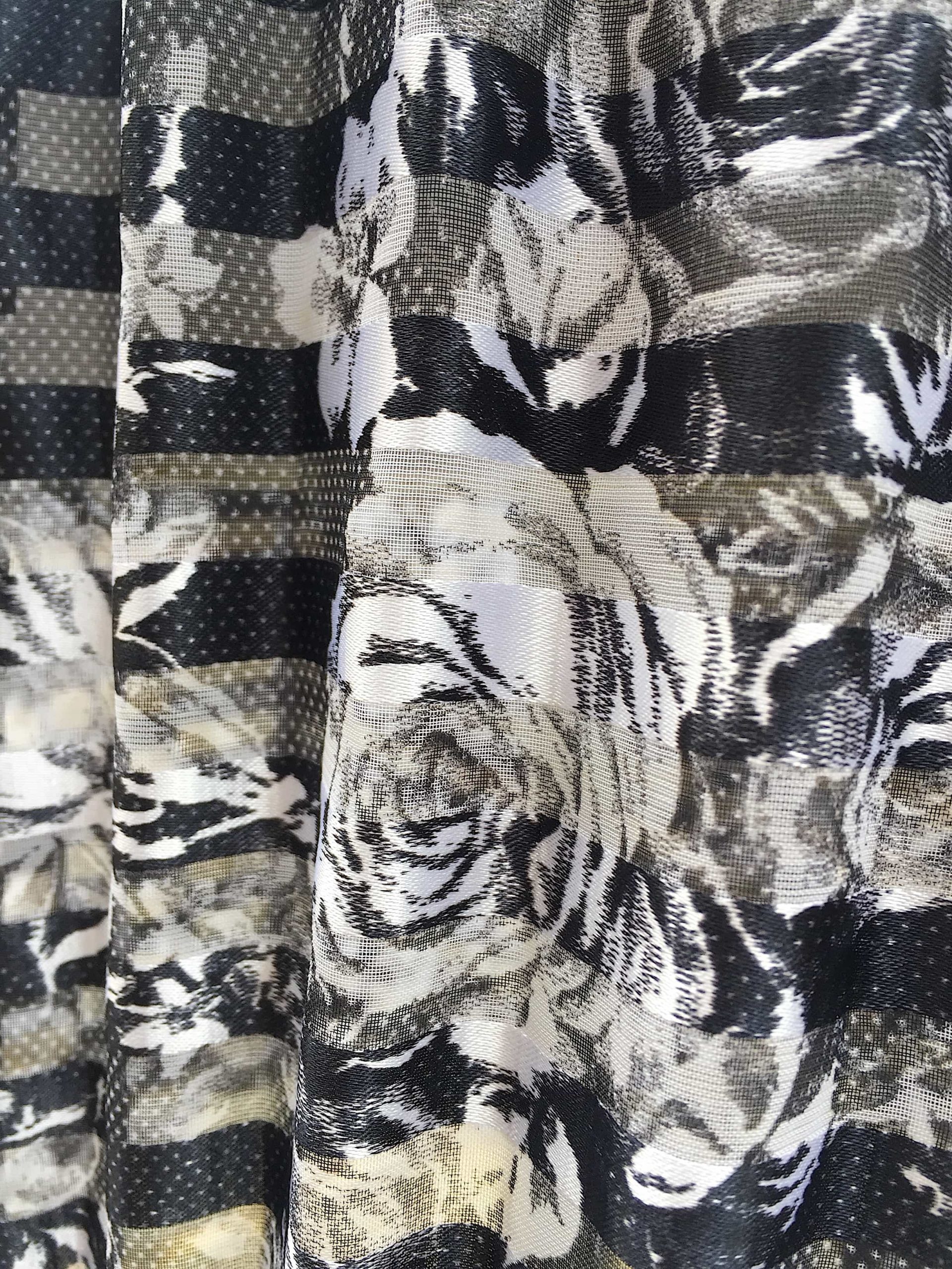 Composition : Polyester avec les rayures satiné, extensible en haut, et non extensible sous la taille.